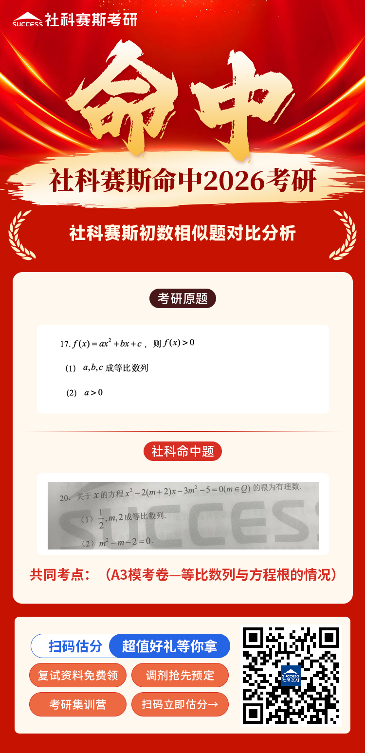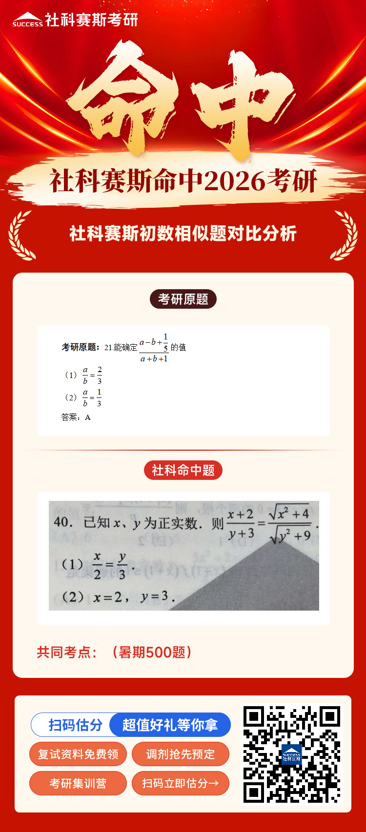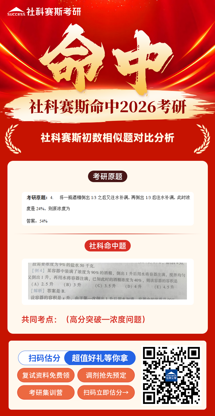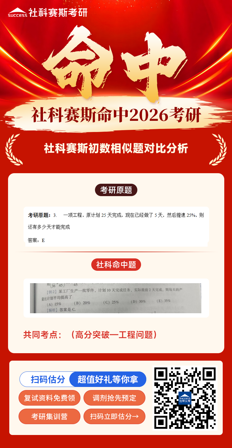 導讀:恭喜?社科賽斯命中2026MBA EMBA MEM MPA MPAcc管綜數學部分真題