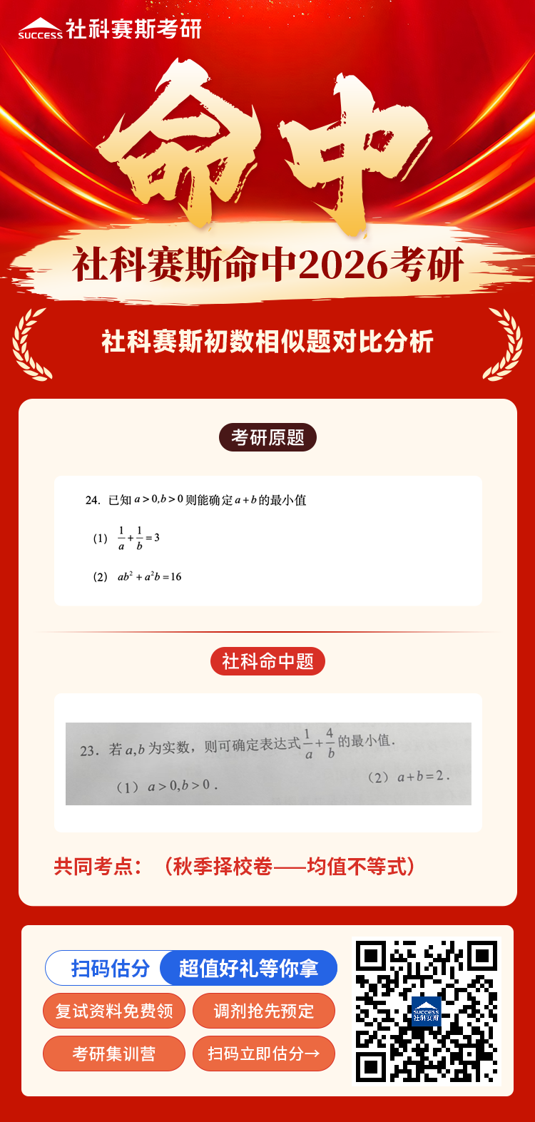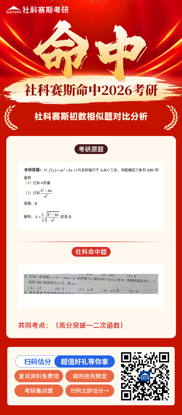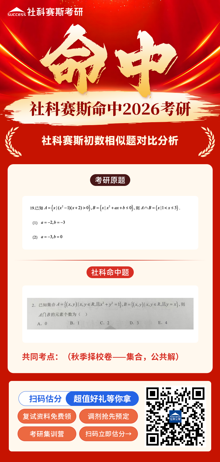 導讀:恭喜?社科賽斯命中2026MBA EMBA MEM MPA MPAcc管綜數學部分真題