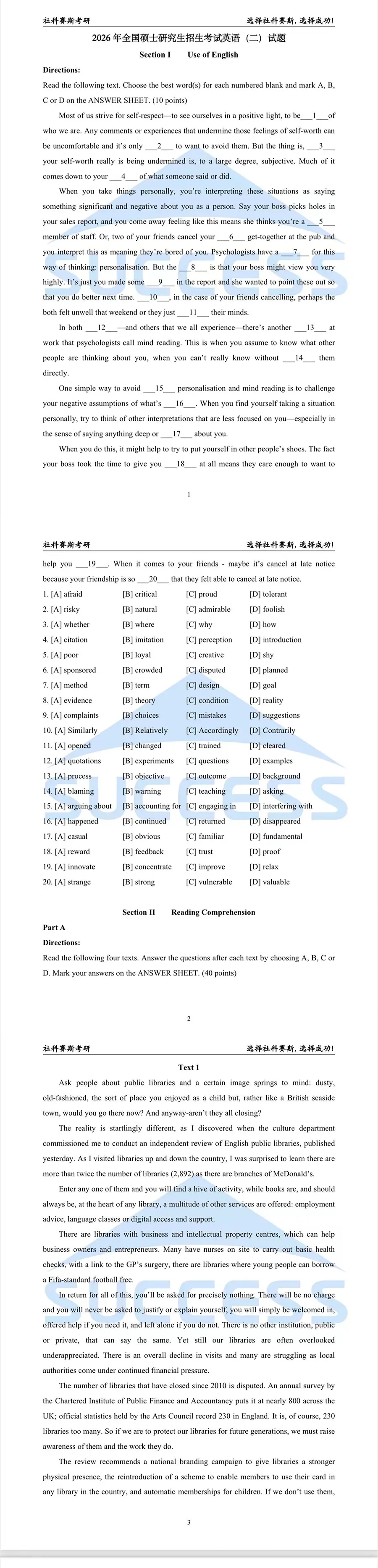 導讀:2026考研 MBA EMBA MEM MPA MPAcc《英語二》真題